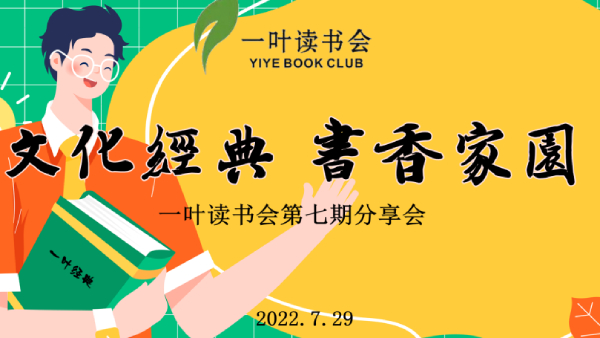 “文化經(jīng)典,書香家園。”7月29日晚,一葉讀書會第七期讀書分享活動如期開展。大家圍坐一起分享自己的讀書心得體會,交流書中...