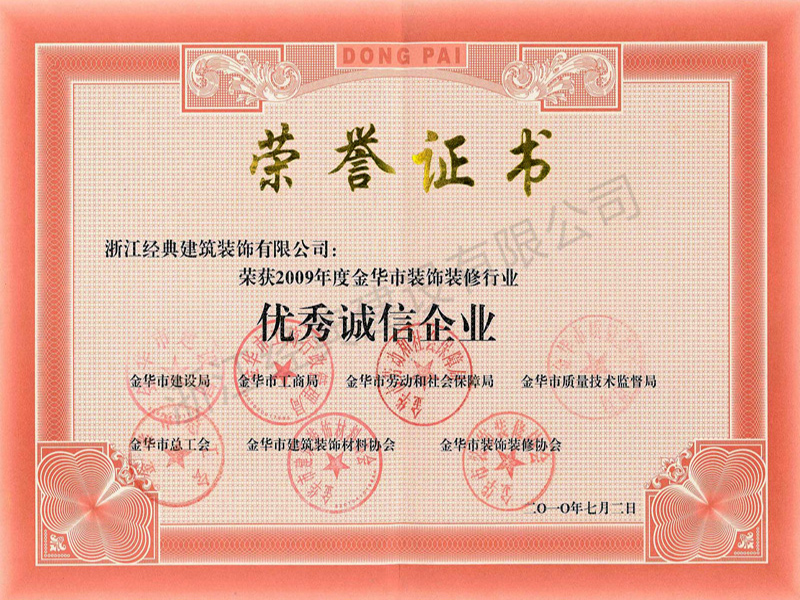 金華市裝飾裝修行業(yè)優(yōu)秀誠信企業(yè)...