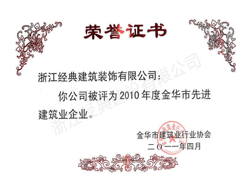 2010年度金華市先進建筑業(yè)企...