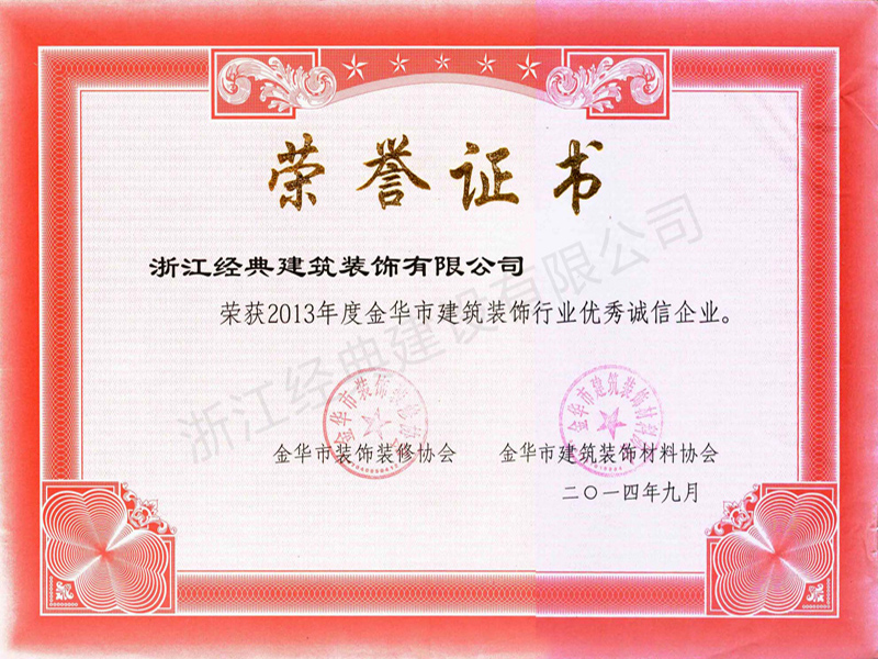 2013金華市建筑裝飾行業(yè)優(yōu)秀...